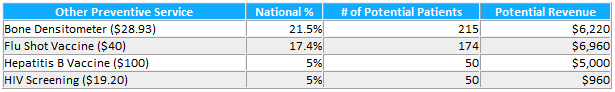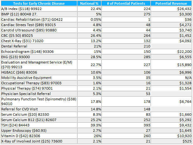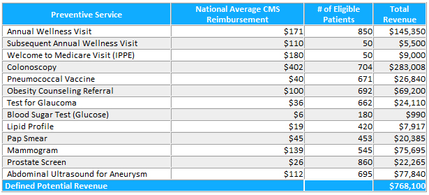* The projected revenue is limited to CMS Preventive Services and does not include revenue derived from any other diagnostic test or interventional procedure detected during the AWV. The foregoing is for illustrative purposes and is not a guarantee that you will generate any particular amount or level of income. VH makes no representations or warranties regarding the accuracy of any information provided by this calculator or the results that will be obtained from the use of our software, and shall not be responsible or liable for any errors or omissions in that information or the results obtained from any such use.